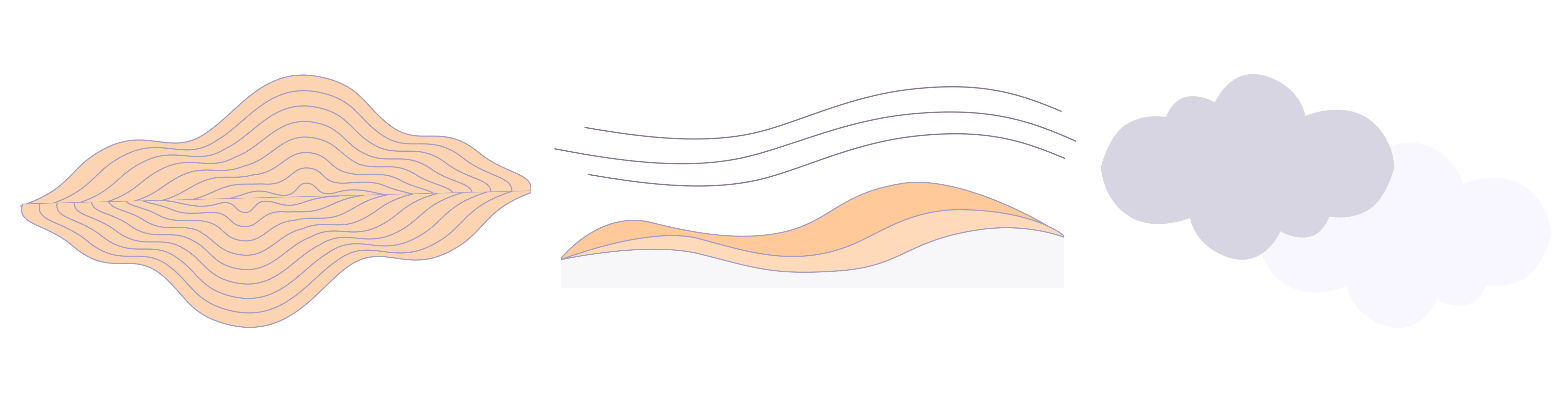 The home screen continues with the design language of using subtle colors, waves, and minimal illustrations.